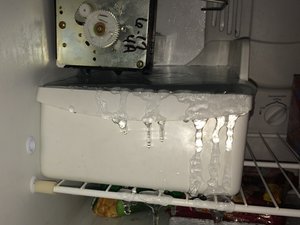 Where the water has run down the icemaker there will usually be a white deposit from the water. The refrigerator Model Number is ET8KMTMXKT Serial Number EL Answered by a verified Appliance Technician. If you find deposits see if they indicate overfilling. There are several reasons why this occurs, ranging from simple fixes to ones that are more complex.